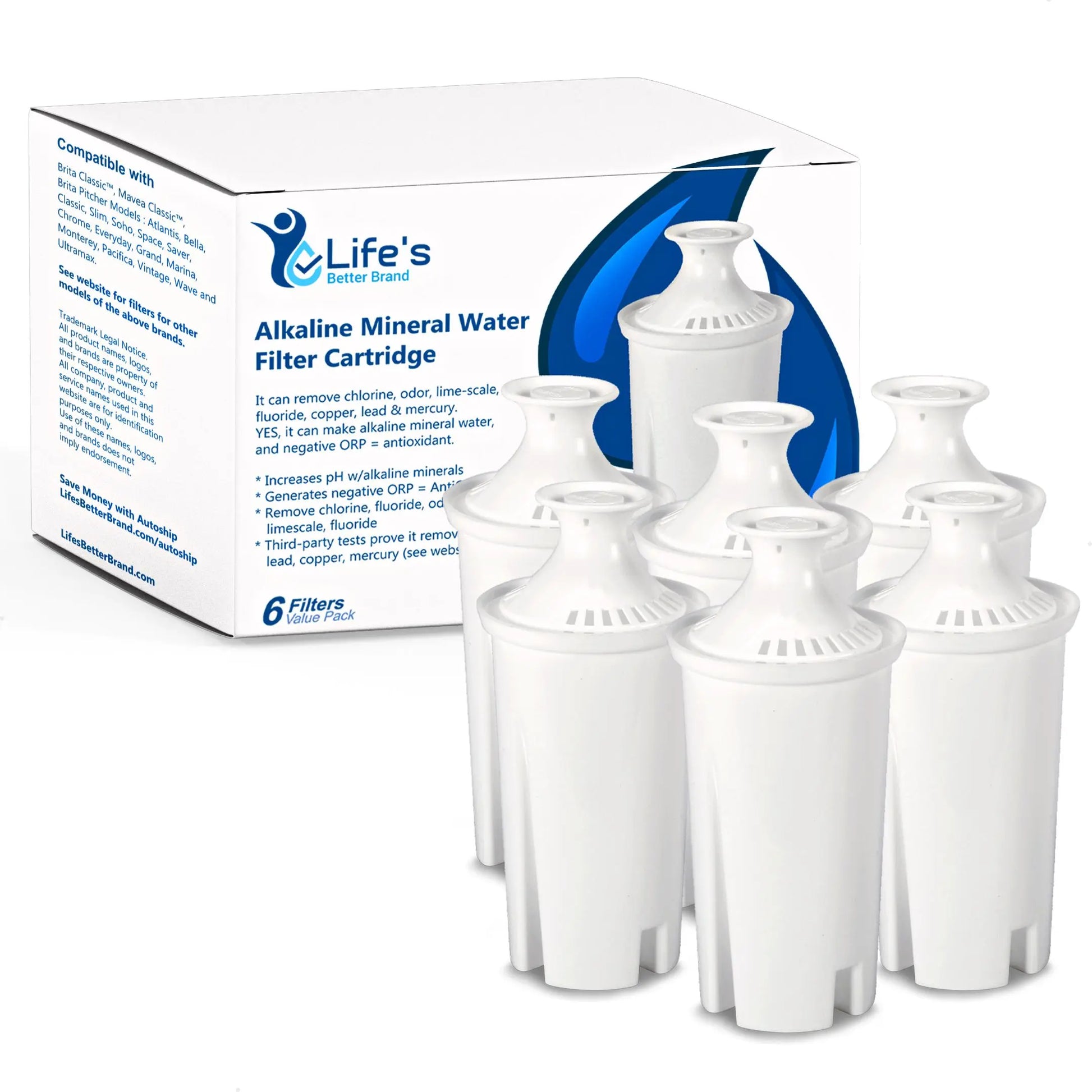 Alkaline Pitcher Replacement Filters that fit Brita® Pitchers - 6 Cartridges Pack